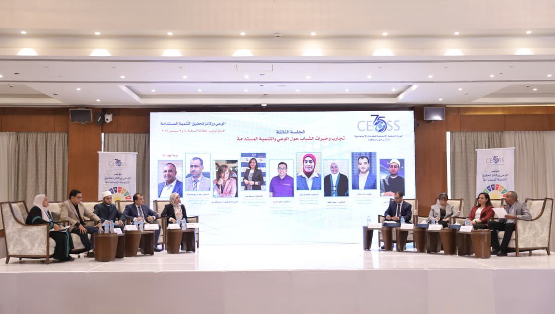 In the third session, young participants from the Ministry of Endowments, the Church, and civil society organizations presented practical models of initiatives that combined values of awareness and development. Commentators Samia Kadri and Tarek Abu Heshema praised the role of youth in shaping the future of development with creative ideas and initiatives.