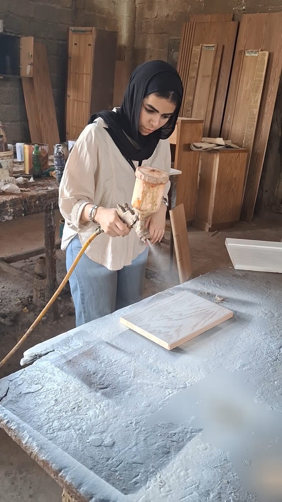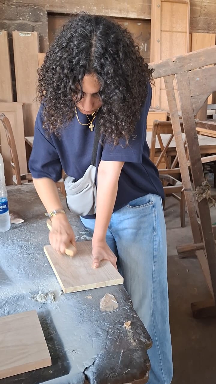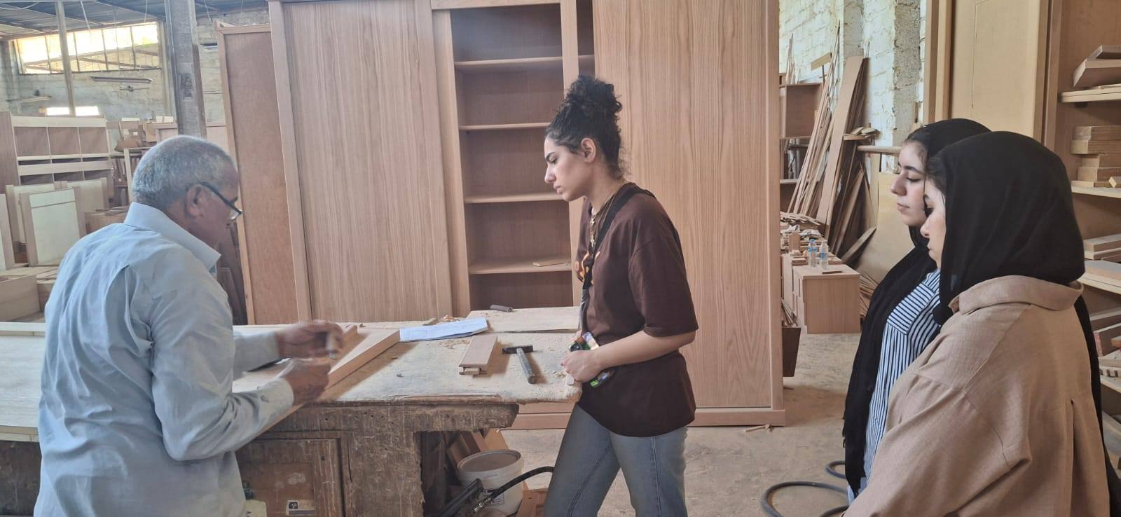 The training aimed to introduce students to all stages of furniture production — starting from technical drawing and professional dimension measurement, through learning about the tools used in the different manufacturing phases, to producing scaled models and working with various types of paints and finishing techniques to achieve the final product.