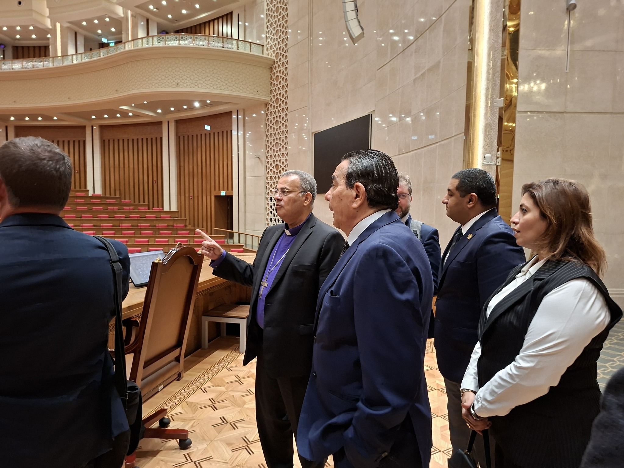 Following the meeting, the Head of the Evangelical Denomination and the accompanying delegation toured the main hall of the House of Representatives, where they were briefed on the mechanisms of parliamentary work and its role in supporting national legislation related to human rights and sustainable development. The delegation also listened to a comprehensive overview of the history of parliamentary life in Egypt and its development until the move to the New Administrative Capital.