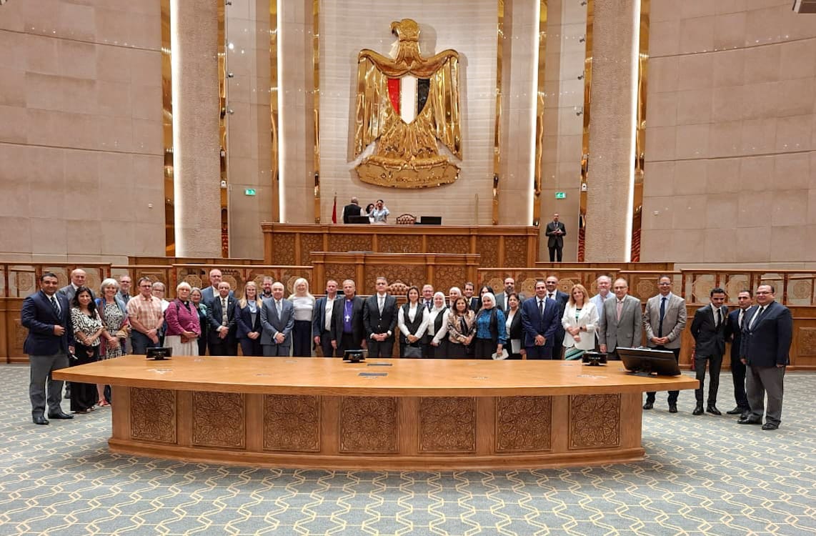 Dr. Rev. Andrea Zaki and the accompanying delegation were received by Dr. Tarek Radwan, Chair of the Human Rights Committee of the House of Representatives, along with a number of committee members, who welcomed the delegation and affirmed the Parliament’s pride in its ongoing cooperation with Egyptian civil society institutions—foremost among them the Coptic Evangelical Organization—in recognition of their impactful national and humanitarian role.