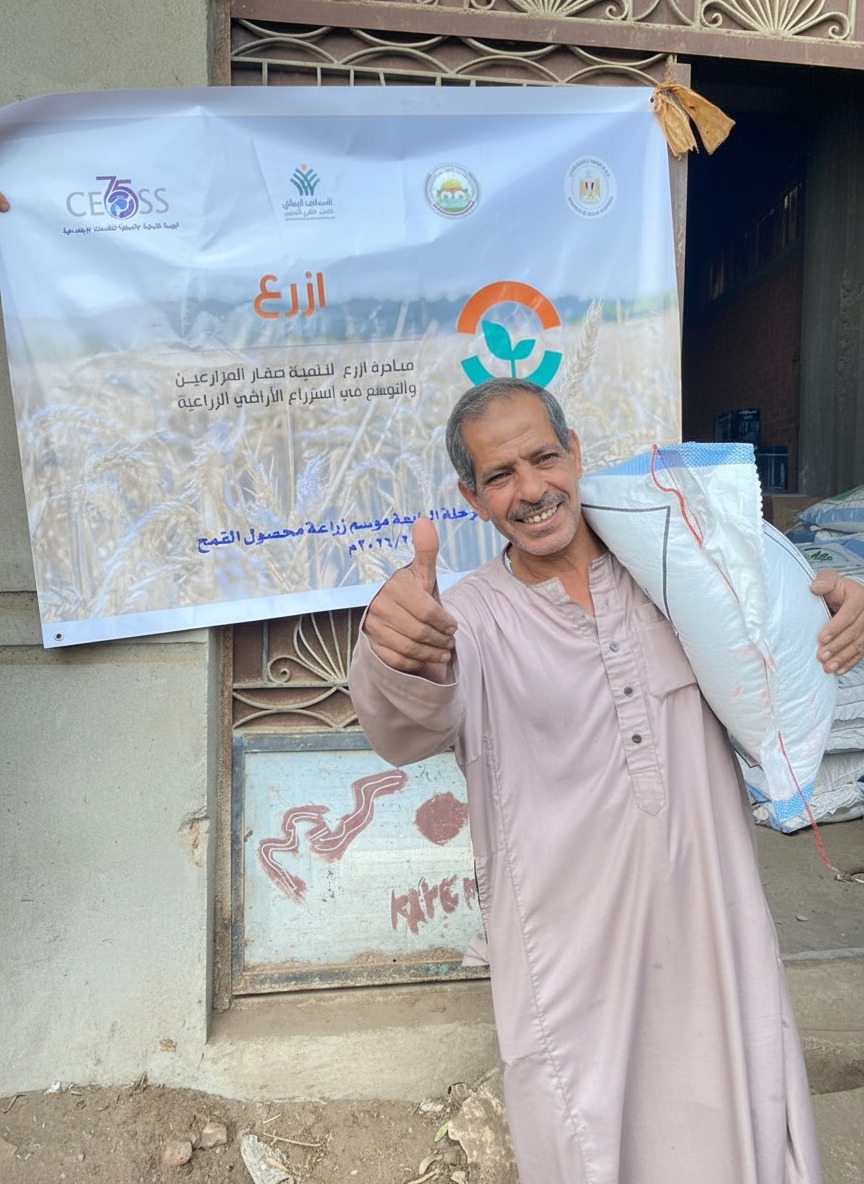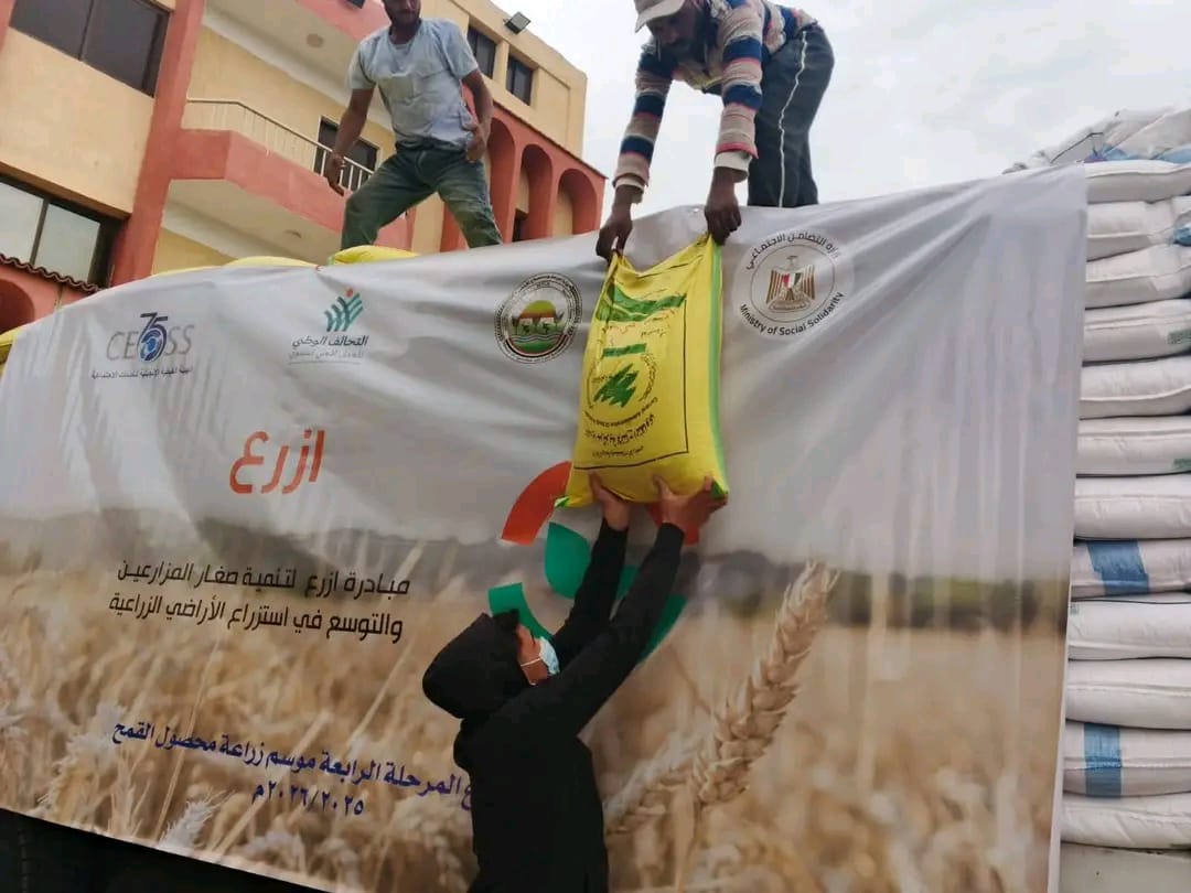 The organization called on all farmers to visit partner civil society associations or contact volunteer teams to fill out the “Ezraa” application form and obtain subsidized seeds at a price of 425 EGP per sack, in order to enhance the economic and social empowerment of farmers, ensure strategic wheat self-sufficiency, and support community stability in rural Egypt.